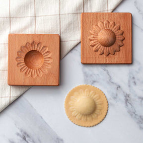 Wooden Single Ravioli 'Sunflower' Pasta Mould with tamper
